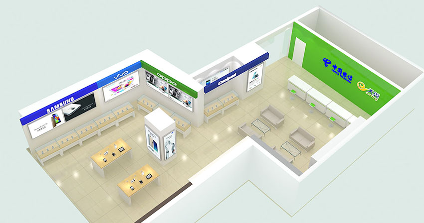 项目说明:成都武侯区桂溪店100平方电信营业厅装修